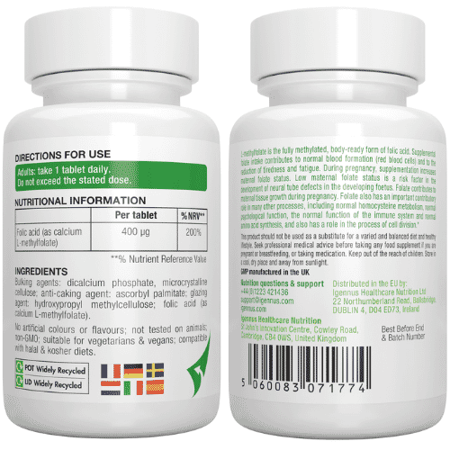 Pure L-Methylfolate delivers an optimal daily dose of 400µg folate in the body-ready and fully methylated form, ideal for providing health benefits without upsetting homeostasis. Each bottle delivers 180 small, easy-to-swallow tablets.