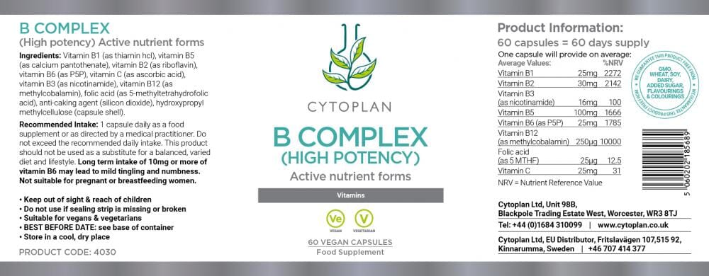 A comprehensive, high potency B complex formula providing key B vitamins in their most active forms. B vitamins have many uses including contributing to the release of energy from foods, supporting the healthy function of the nervous system and contributing to the reduction of tiredness and fatigue.