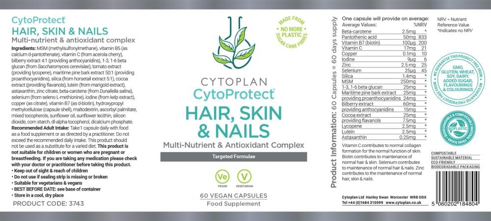 This is a synergistic multi-nutrient and antioxidant one-a-day complex that has been specially formulated to help support the health of hair, skin and nails. CytoProtect® is a new range of products designed to provide optimal support for specific body tissues and systems.