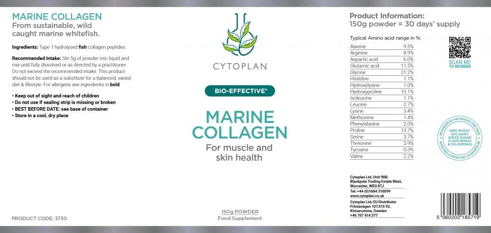 Premium, pure high strength marine collagen for skin, gut, and connective tissue health, sourced from wild sustainable white fish stocks. Marine collagen is in an easy to take neutral smelling and tasting powder form, readily mixed into your favourite drink..