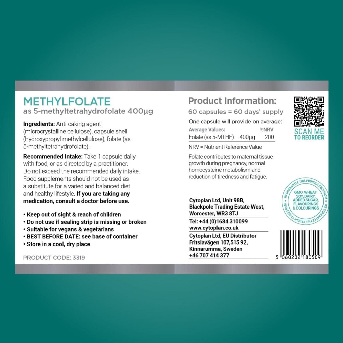 This Methylfolate supplement contains 400ug of methylfolate per capsule in a base of alfalfa. Methylfolate (5MTHF) is a stable, safe and bio-effective form of folate.