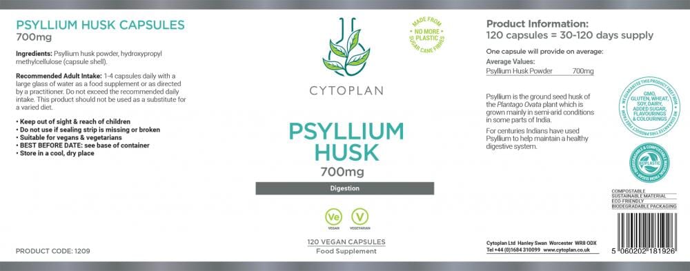 Psyllium Husks are a good form of dietary fibre and help maintain healthy, efficient intestines. Cytoplan psyllium husk powder comprises the seed coatings from Plantago Ovata, cleaned to 99.9% purity, dry processed, and importantly free from solvents.