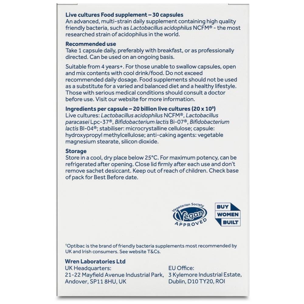 Premium, high strength, daily supplement of natural bacteria, 20 billion live cultures guaranteed per capsule, With L. acidophilus NCFM®, the most researched strain of acidophilus in the world. For those aged 4 years+.