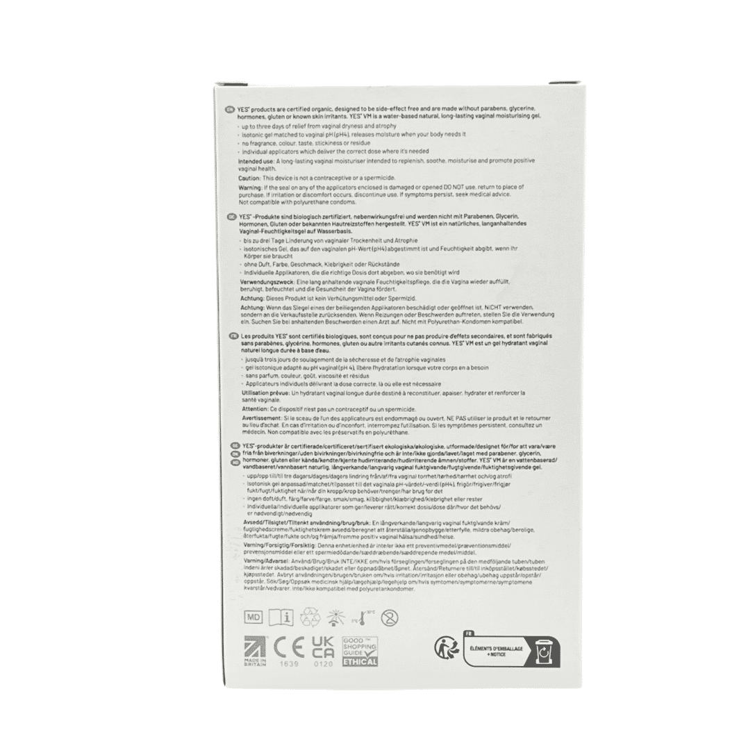 YES® VM is a natural vaginal moisturiser which rapidly relieves vaginal dryness and itching fast. pH matched to the vagina, it works in harmony with your body, and because it's a moisturiser, it lasts longer than a lubricant.