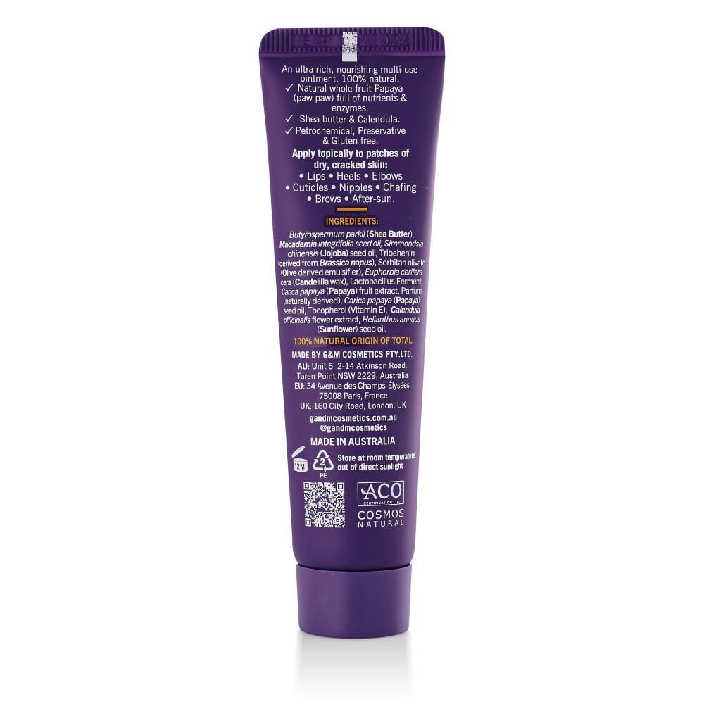 Papaya Ointment features a rich nourishing blend of papaya, shea butter and calendula. This multi-use balm is ultra-rich and works to soothe, restore & protect skin naturally. One tube, many uses – lips, heels, elbows, cuticles, nipples, chafing, brows, after-sun. For dry, cracked & irritated skin.