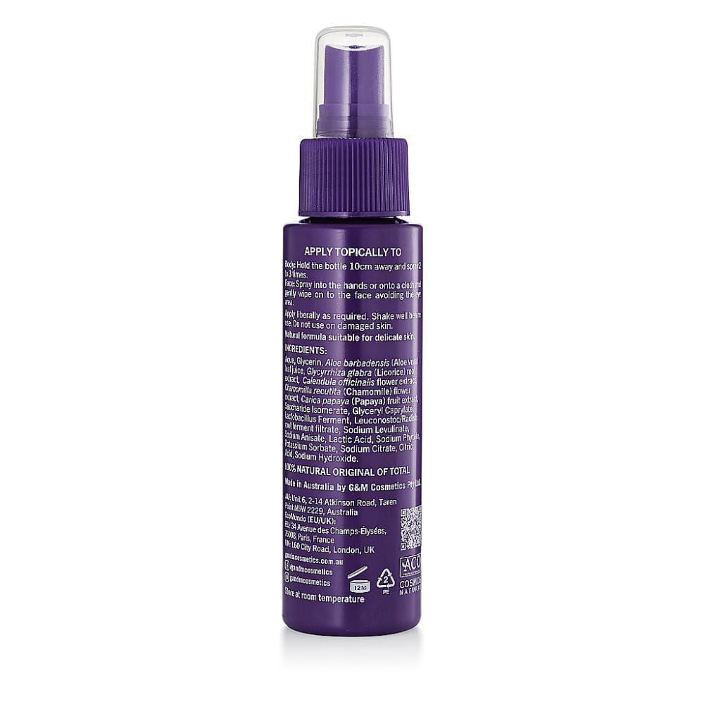 Apply topically to body: hold the bottle 10cm away and spray 2-3 times. Apply topically to face: spray into the hands or a cloth and gently wipe on to the eye area. Apply liberally as required. Shake well before use. Do not use on damaged skin.