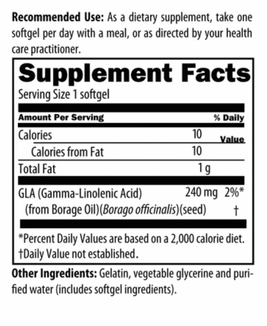 GLA (Gamma-Linolenic Acid) (from Borage Oil) (Borago officinialis) (seed) 240 mg 2