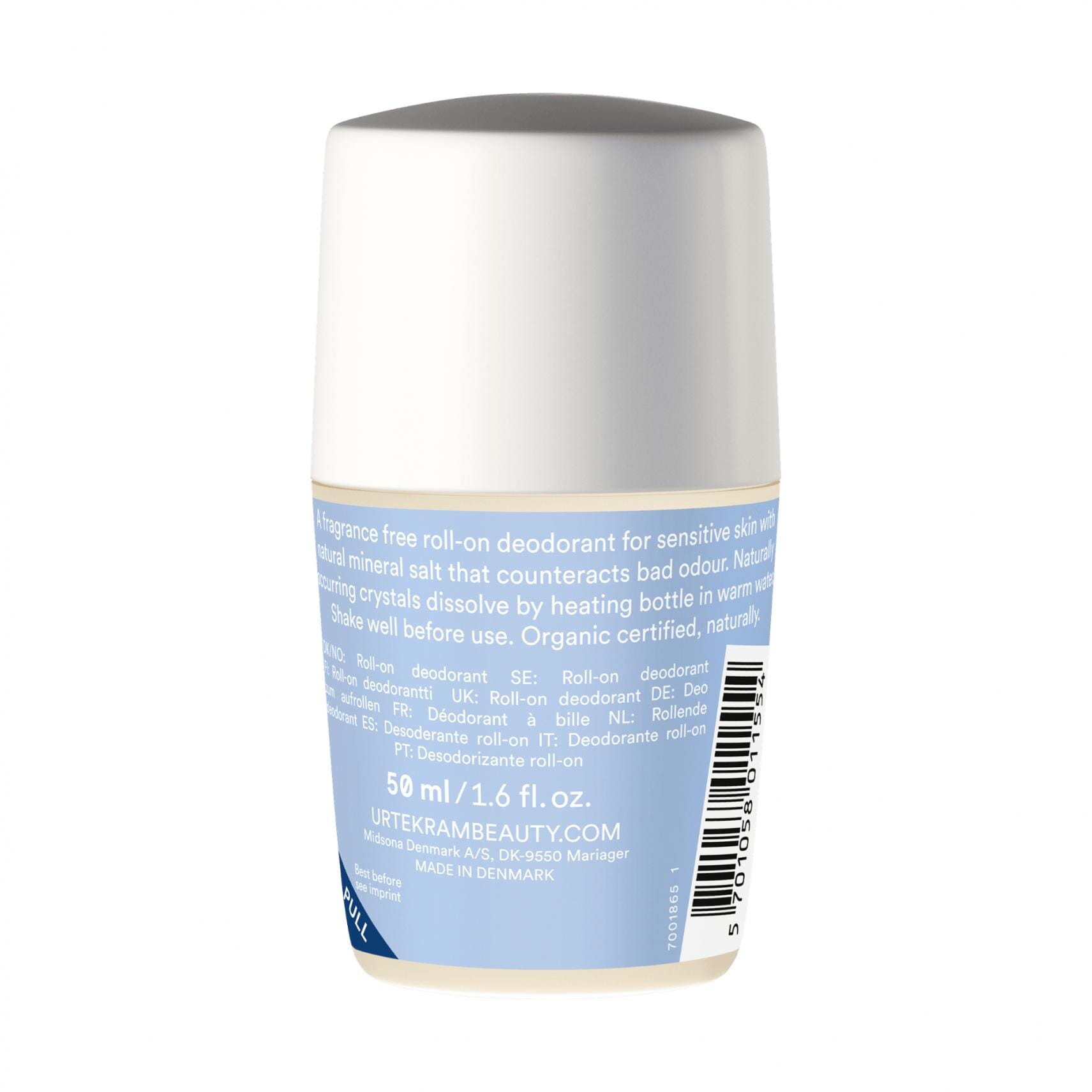 Urtekram's refreshing roll-on crystal deodorant enriched with natural mineral salt helps to counteract bad odour. A mild formula, free from perfume to help your skin stay in balance. Organic certified, naturally.