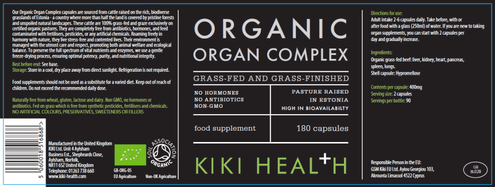 Kiki Health's Organic Organ Complex capsules combine six nutrient-rich organs: liver, kidney, heart, pancreas, spleen, and lungs, from organic, grass-fed cattle. Freeze-dried to maintain natural potency, this unique blend provides comprehensive, whole-food nourishment in one pure formula.