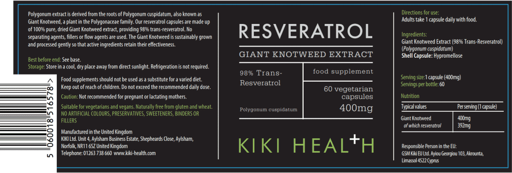 Discover the antioxidant resveratrol with Kiki Health's premium capsules, carefully formulated from 100% pure, dried Giant Knotweed extract. The capsules contain an impressive 98% trans-resveratrol, which comes from Polygonum cuspidatum roots and ensures superior potency and effectiveness.