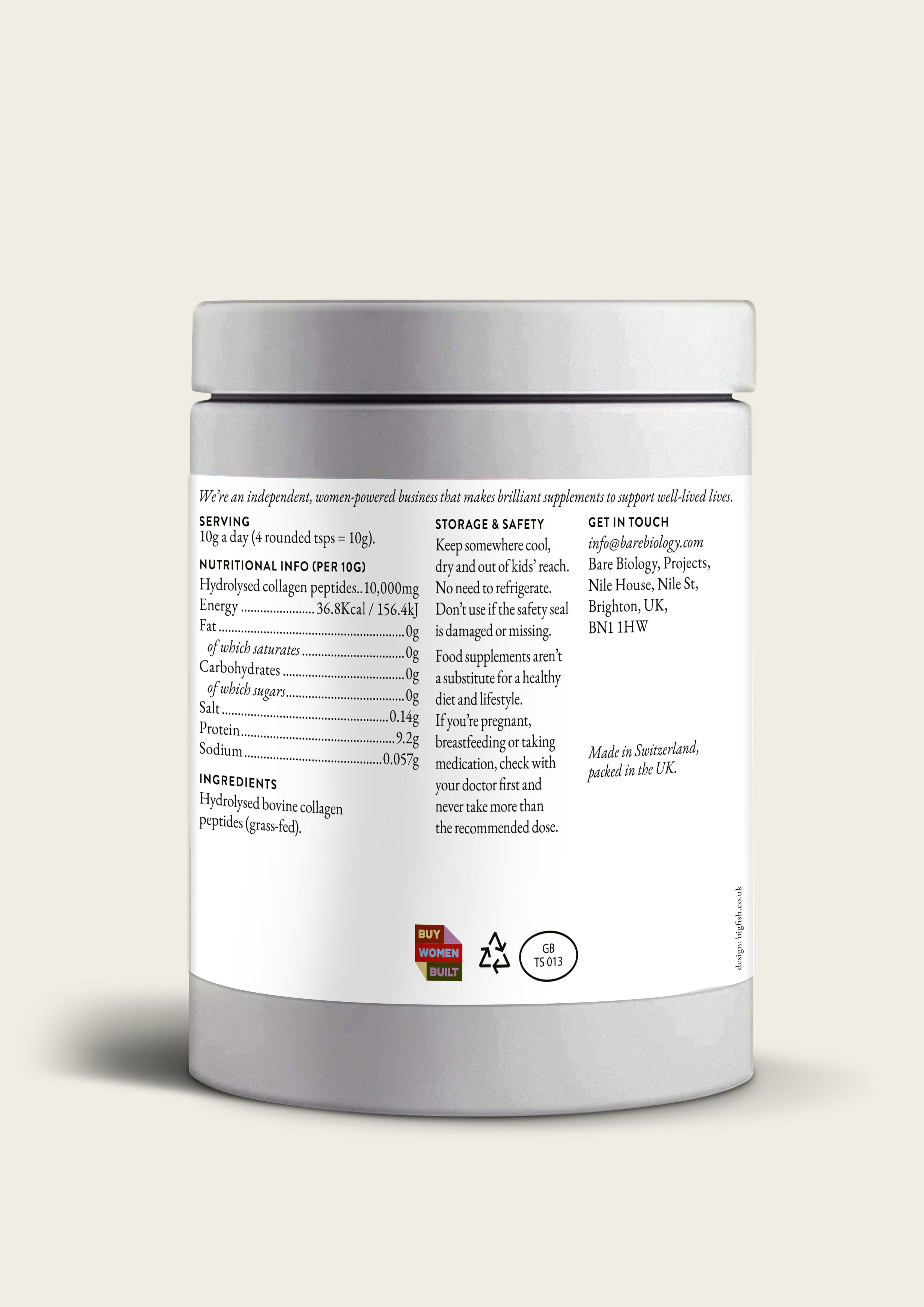 Fundamental replenishes hardworking bodies with 10,000mg of pure, hydrolysed bovine collagen per 10g serving. Naturally rich in type I and III collagen, it delivers the proteins your body needs to stay strong, flexible, and resilient. With a tiny 2,000 Dalton weight it will reach your cells fast.