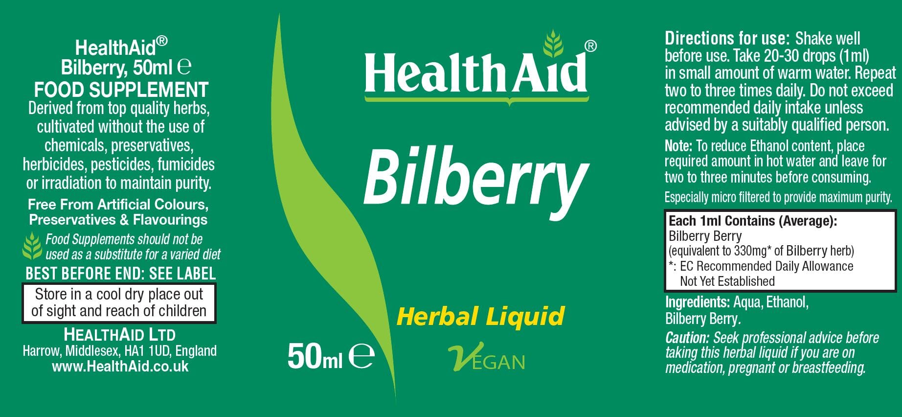 HealthAid Bilbery tincture is formulated using the best quality extract, derived from wild crafted herbs. Anthocyanosides, the flavonoid complex in bilberries, could provide support for night vision.