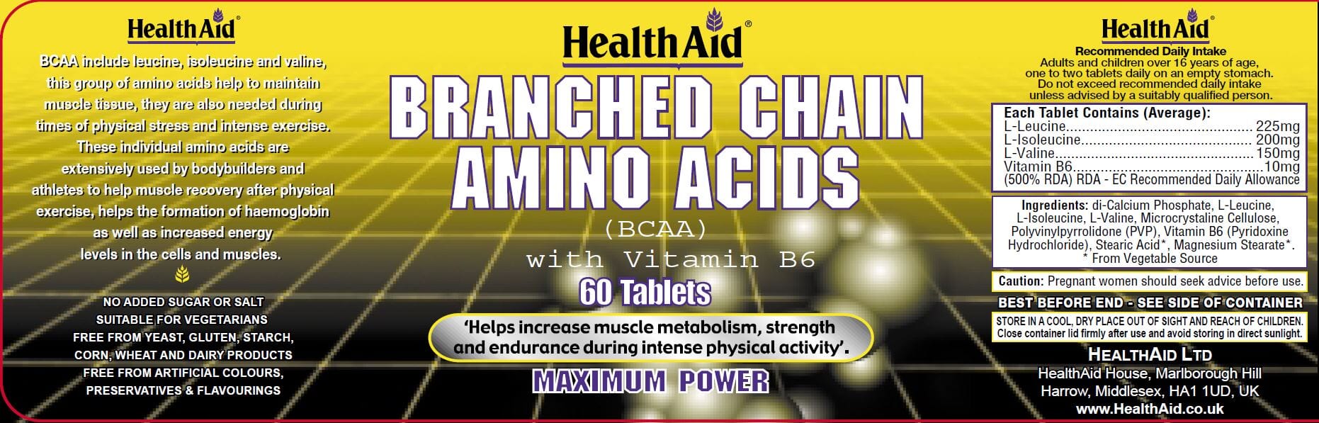 HealthAid Branched Chain Amino Acids include Leucine, Isoleucine and Valine which contribute to the maintenance of a healthy muscle tissue, and are highly beneficial during times of physical stress and intense exercise.