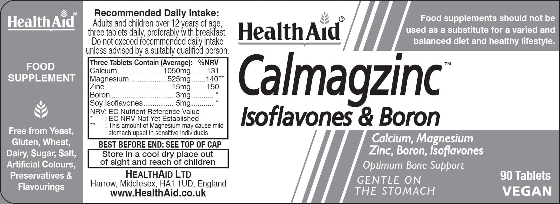 Calmagzinc provides three important minerals specially formulated to work synergistically for better absorption and efficiency. Calcium, Magnesium, Soy Isoflavones and Boron play an important role in the development and maintenance of healthy strong bones.