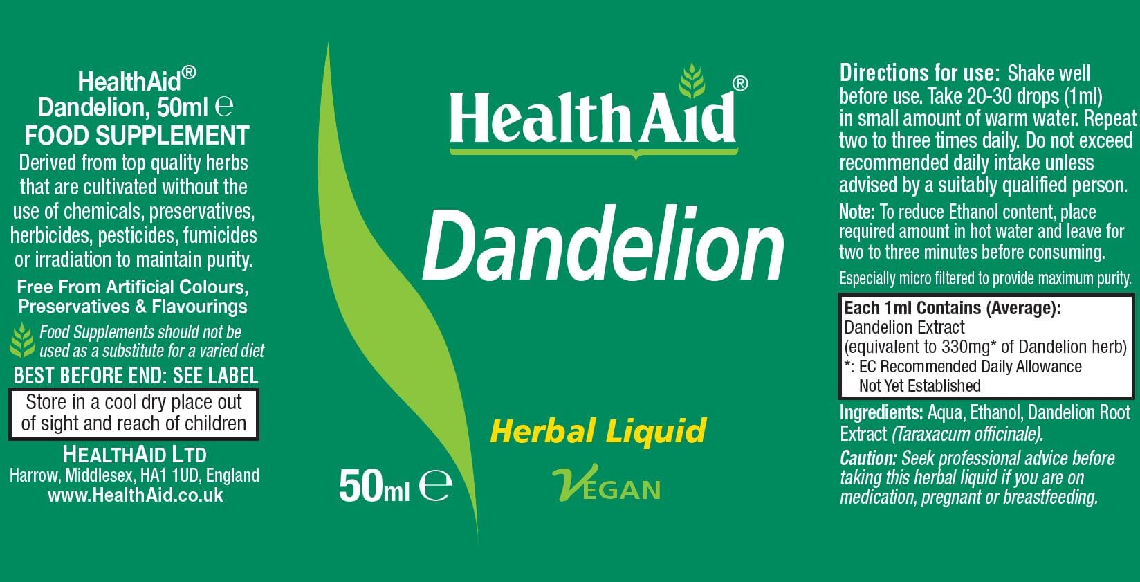 Dandelion Extract (equivalent to 330mg of  Dandelion herb), Aqua, Ethanol.