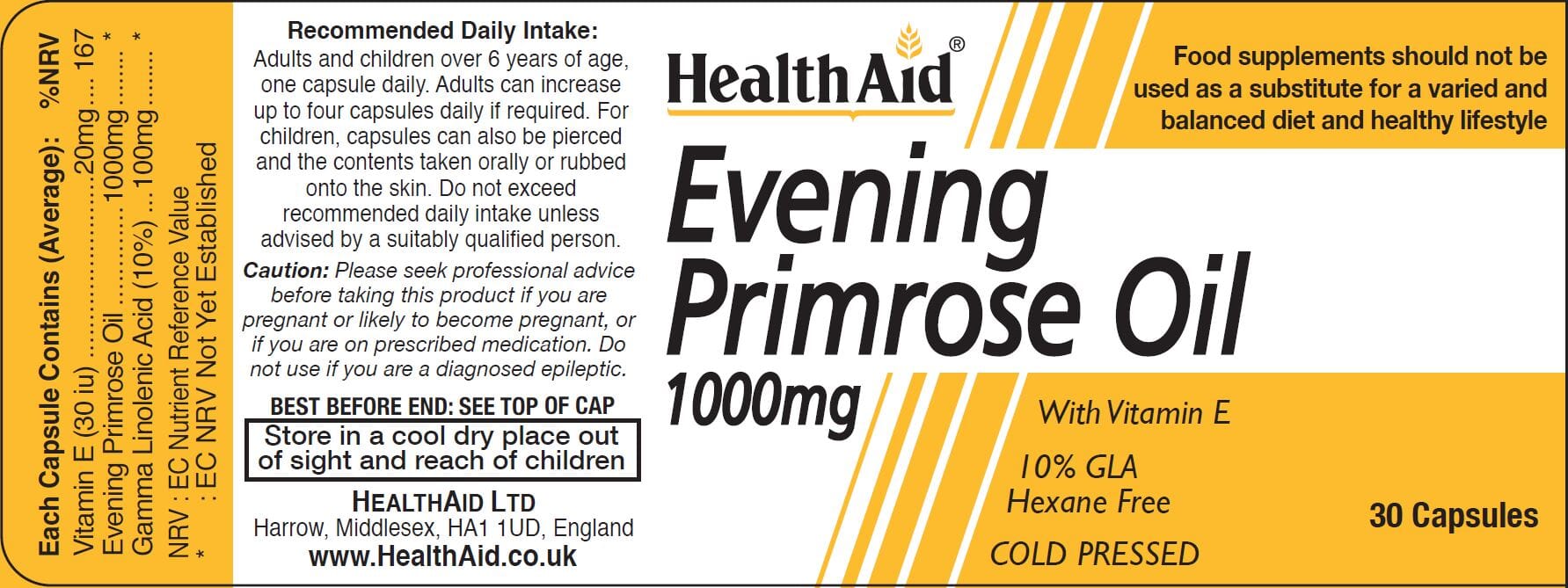Evening Primrose Oil is rich in Gamma Linolenic Acid (GLA) essential for the production of Prostaglandins to support metabolism, hormonal balance, immune & nervous system. Cold-pressed with added Vitamin E and hermetically sealed in a soft capsule to maintain freshness and purity.