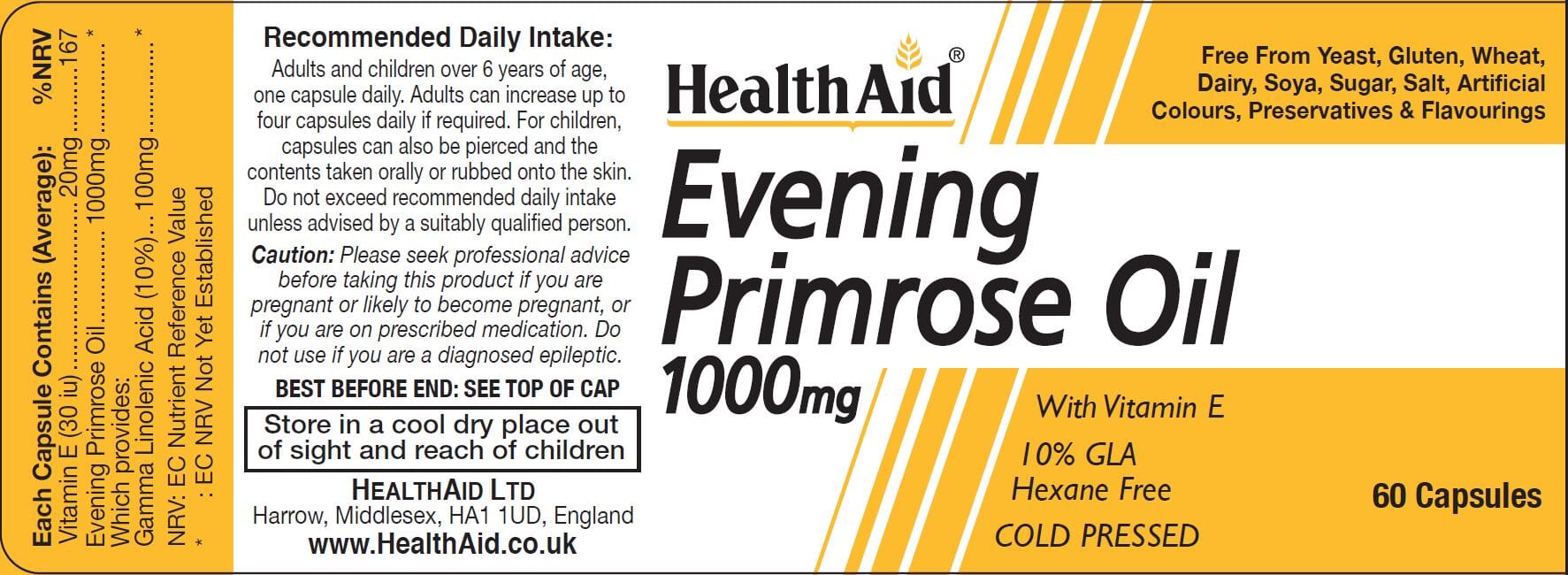 Evening Primrose Oil is rich in Gamma Linolenic Acid (GLA) essential for the production of Prostaglandins to support metabolism, hormonal balance, immune & nervous system. Cold-pressed with added Vitamin E and hermetically sealed in a soft capsule to maintain freshness and purity.