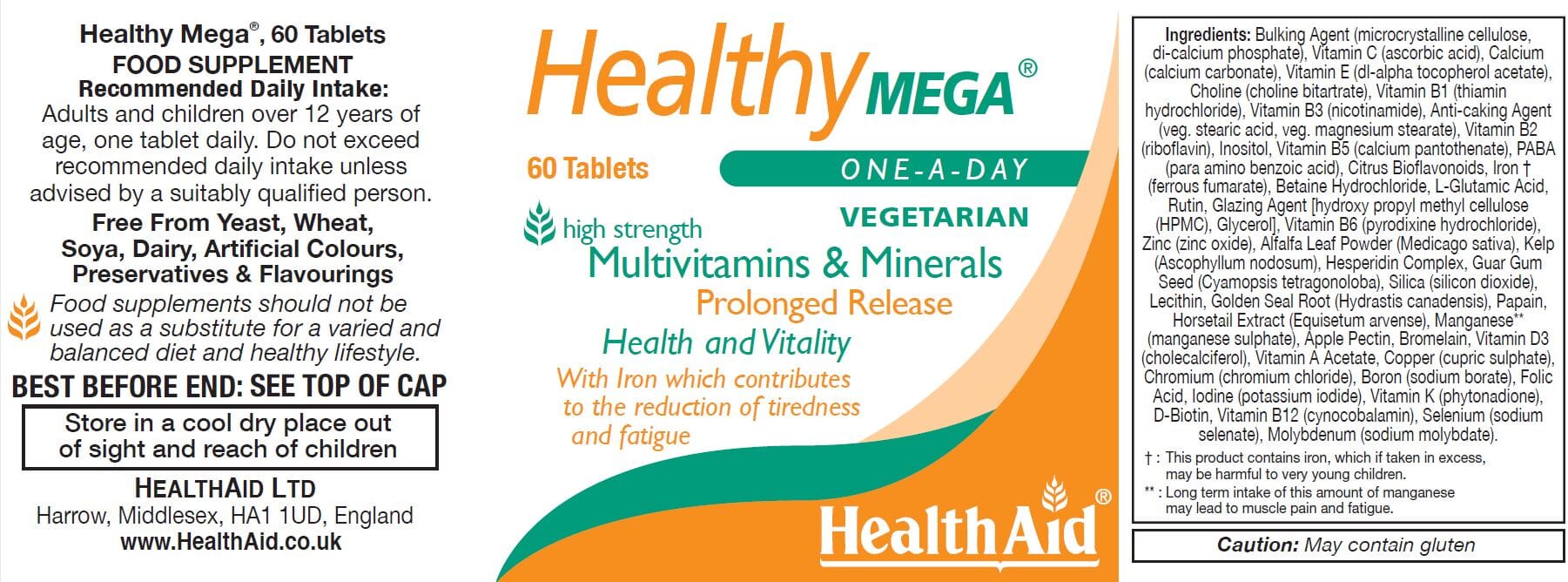 Vitamin C (ascorbic acid), Calcium (calcium carbonate), Niacin (niacinamide), Inositol, Riboflavin (vitamin B2), Natural Vitamin E (d-alpha tocopherol acetate), Thiamin Hydrochloride (vitamin B1), Pantothenic Acid (calcium pantothenate), Citrus Bioflavanoids, PABA (para amino benzoic acid), Choline (choline bitartrate), Magnesium (magnesium oxide), Silica, Betaine Hydrochloride, Potassium (potassium chloride), L-Glutamic Acid, Rutin, Vitamin B6 (pyrodixine hydrochloride), Iron (ferrous fumarate), Alfalfa Leaf Powder (medicago sativa), Kelp, Lecithin, Hesperidin Complex, Guar Gum Seed (cyamopsis tetragonoloba), Zinc (zinc oxide), Golden Seal Root (hydrastis canadensis), Papain, Horsetail Extract (equisetum arvense), Bromelain, Apple Pectin, Manganese (manganese sulphate), Copper (cupric oxide), D-Biotin, Folic Acid, Vitamin A Acetate, Iodide (potassium iodide), Chromium (chromic chloride), Vitamin B12 (cynocobalamin), Boron (sodium borate), Selenium (sodium selenate), Vitamin K (phytonadione), Vitamin D (cholecalciferol), Molybdenum (sodium molybdate), Bulking Agent (microcrystalline cellulose, maltodextrin, di-calcium phosphate, corn starch), Anti-caking Agent (veg. stearic acid, veg. magnesium stearate, magnesium silicate), Stabiliser (crosscarmellose sodium), Binding Agent (acacia), Glazing Agent (pharmaceutical glaze), Sweetener/Flavour Enhancer (mannitol, glycine), Acidity Regulator (aspartic acid, citric acid). Contains gluten.