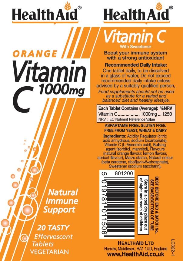 Vitamin C, Acidity Regulator (citric acid, sodium bicarbonate), Bulking Agent (sorbitol, maize starch), Flavour Enhancer (orange flavour, lemon flavour, apricot flavour), Natural Colour (beta carotene, riboflavin-5-phosphate).