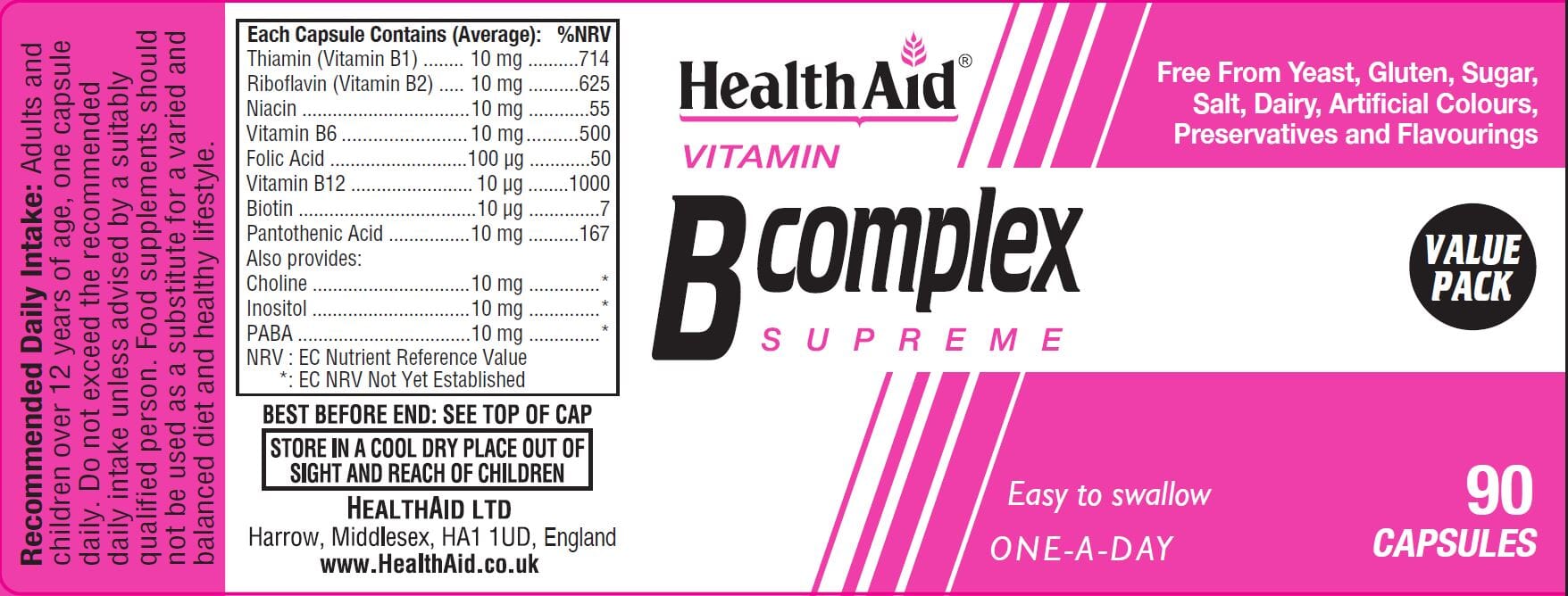 Thiamin (Vit. B1), Riboflavin (Vit. B2), Niacin, Vitamin B6 (Pyridoxine), Folacin (folic acid), Vitamin B12, Biotin, Pantothenic acid, Choline, Inositol, PABA, Capsule shell (Gelatine, Glycerol, Purified Water), Colouring Agent (Red Iron Oxide E172, yellow iron oxide E172).