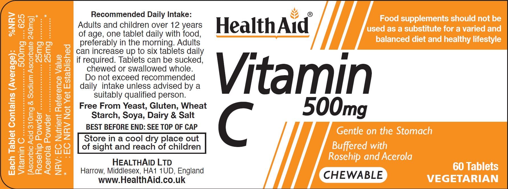 Vitamin C [Ascorbic Acid 310mg & Sodium Ascorbate 240mg], Rosehip Powder, Acerola Powder, Anti-caking Agent (silicon dioxide, veg. stearic acid, veg. magnesium stearate), Flavour Enhancer (orange neorome), Anti-caking agent (magnesium stearate, stearic acid), Sipernat.