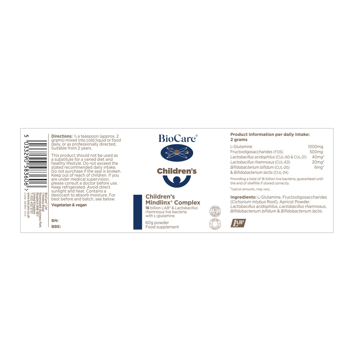 Children's Mindlinx® Complex is a unique blend of the clinically-researched LAB4 and Lactobacillus rhamnosus live bacteria with L-glutamine.