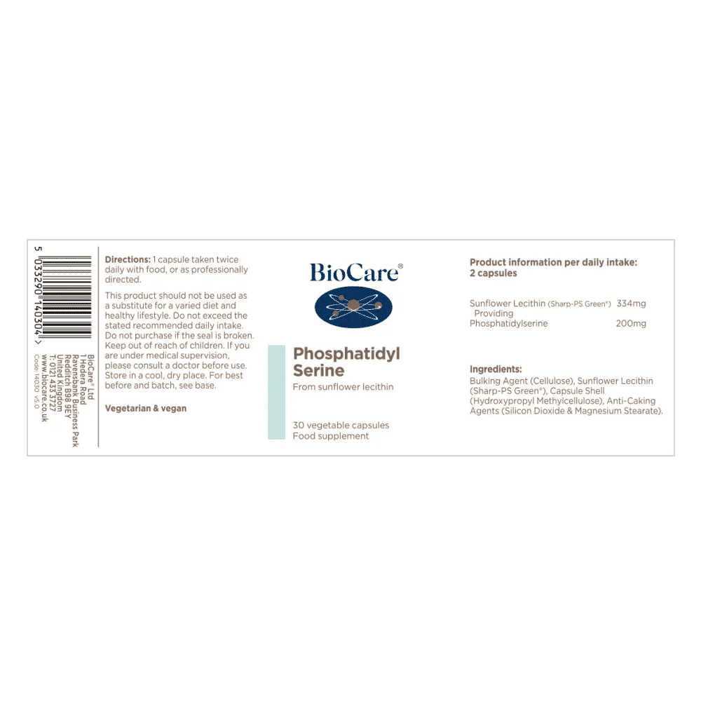 Phosphatidyl Serine is a phospholipid which is presented in a capsule which provides 200mg of phospholipids from sunflower lecithin.