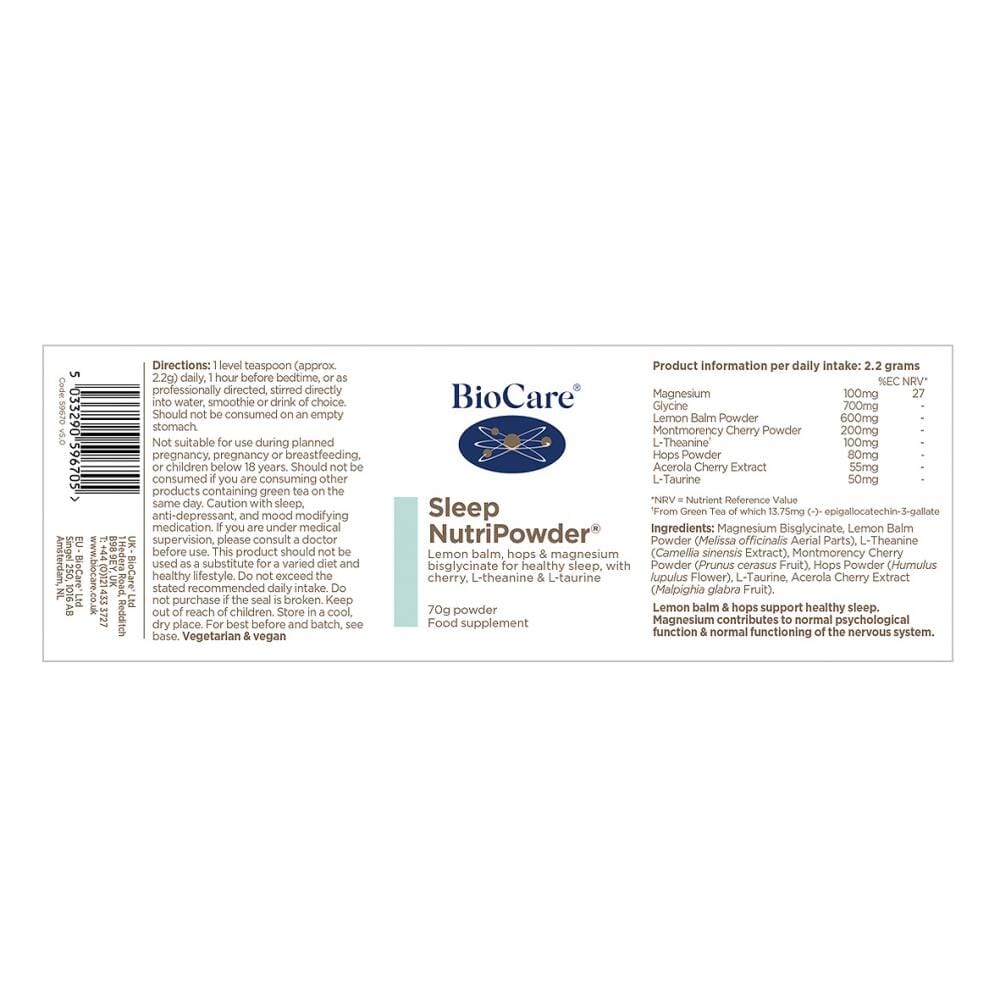 Sleep NutriPowder is a synergistic blend of nutrients and botanicals including magnesium glycinate, lemon balm, L-theanine, L-taurine, Montmorency cherry & hops to aid healthy and restful sleep.
