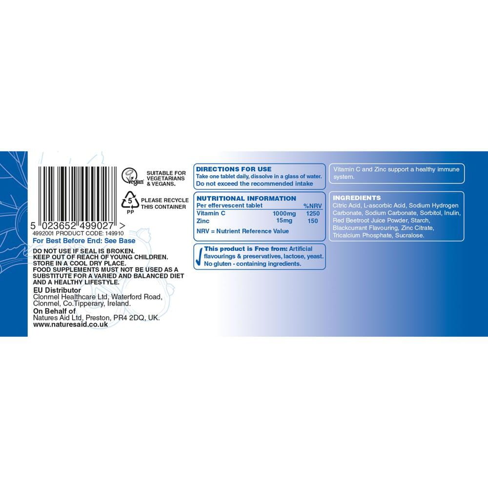 Natures Aid Immune Effervescent combines vitamin C with zinc, to help support a healthy immune response. Each delicious, naturally blackcurrant flavoured tablet provides 1000mg vitamin C with 15mg elemental zinc.
