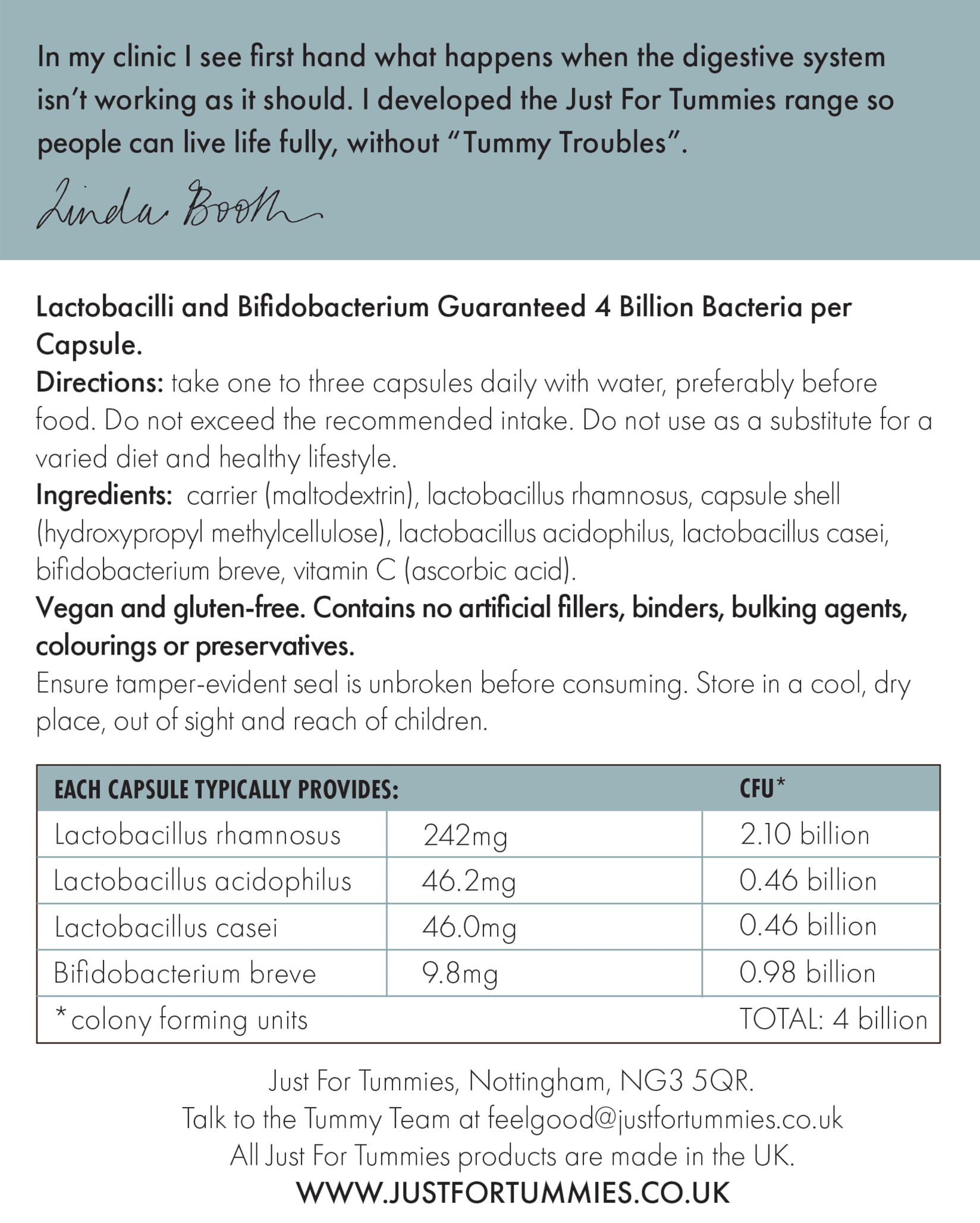 A multi-strain live bacteria capsule containing lactobacilli and bifidi strains of bacteria, to help support digestive and gut health, as well as help positively influence the immune system. Free from artificial fillers, binders and bulking agents. Made in the UK. Vegan and gluten-free.