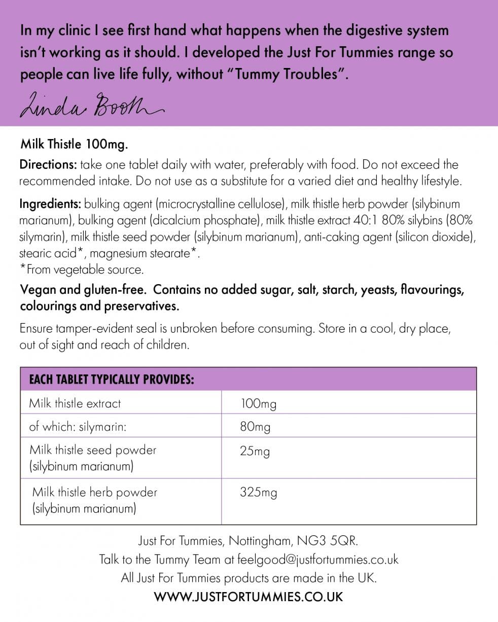 Linda’s Just For Tummies Milk Thistle tablets is a botanical formula, traditionally used for over-indulgence. Her Milk Thistle food supplement supports the liver and is ideal for when you’ve eaten, or drunk, to uncomfortable levels – a common event, especially around the holiday season!