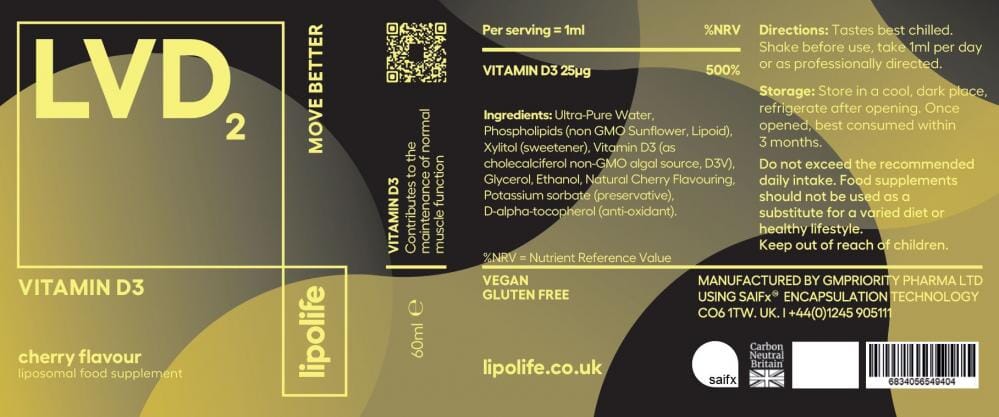 LVD2 Vitamin D3 Cherry Flavour 60ml (Liposomal)