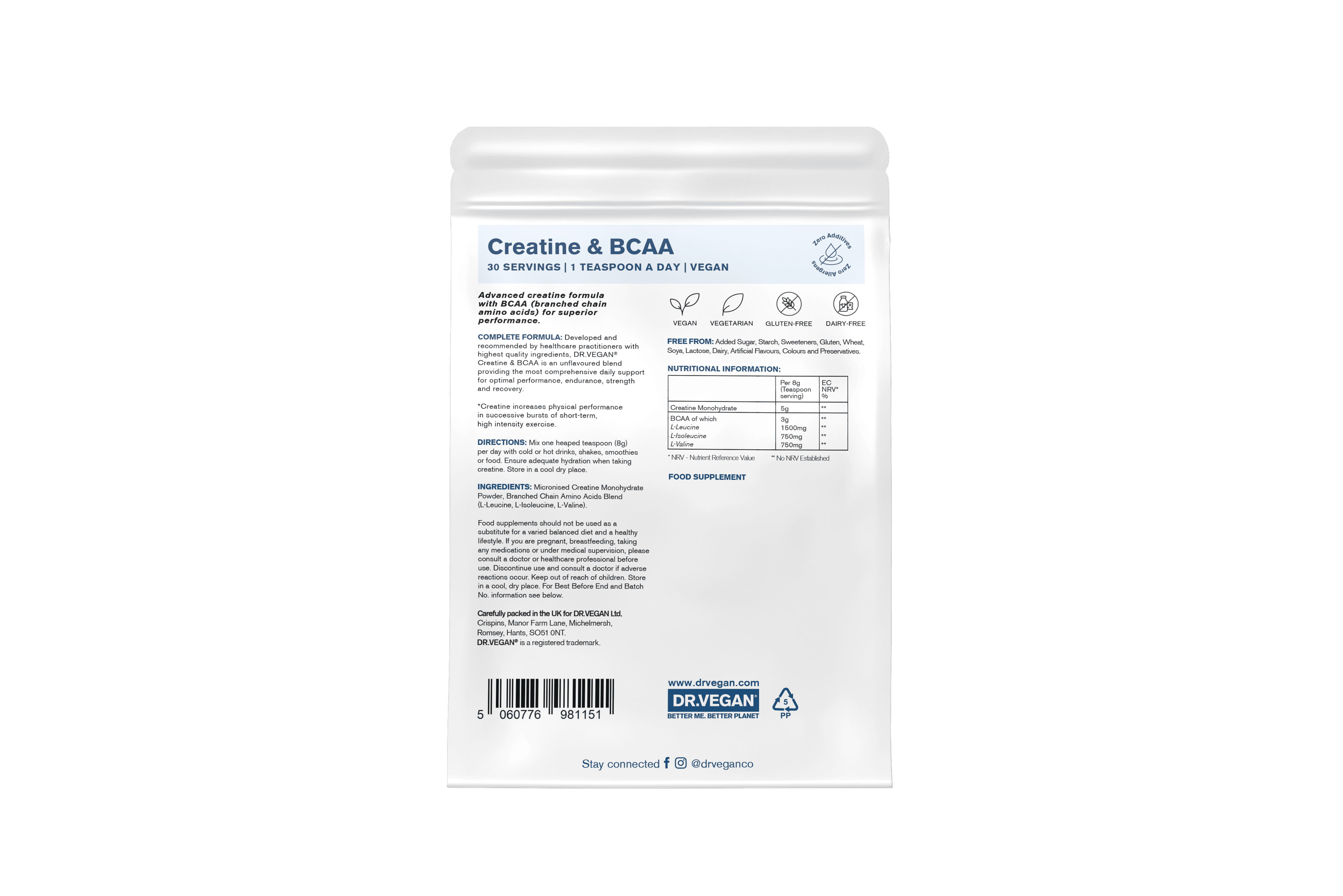 Creatine Micronised Monohydrate Powder, Branched Chain Amino Acid Blend (L-Leucine, L-Isoleucine, L-Valine)