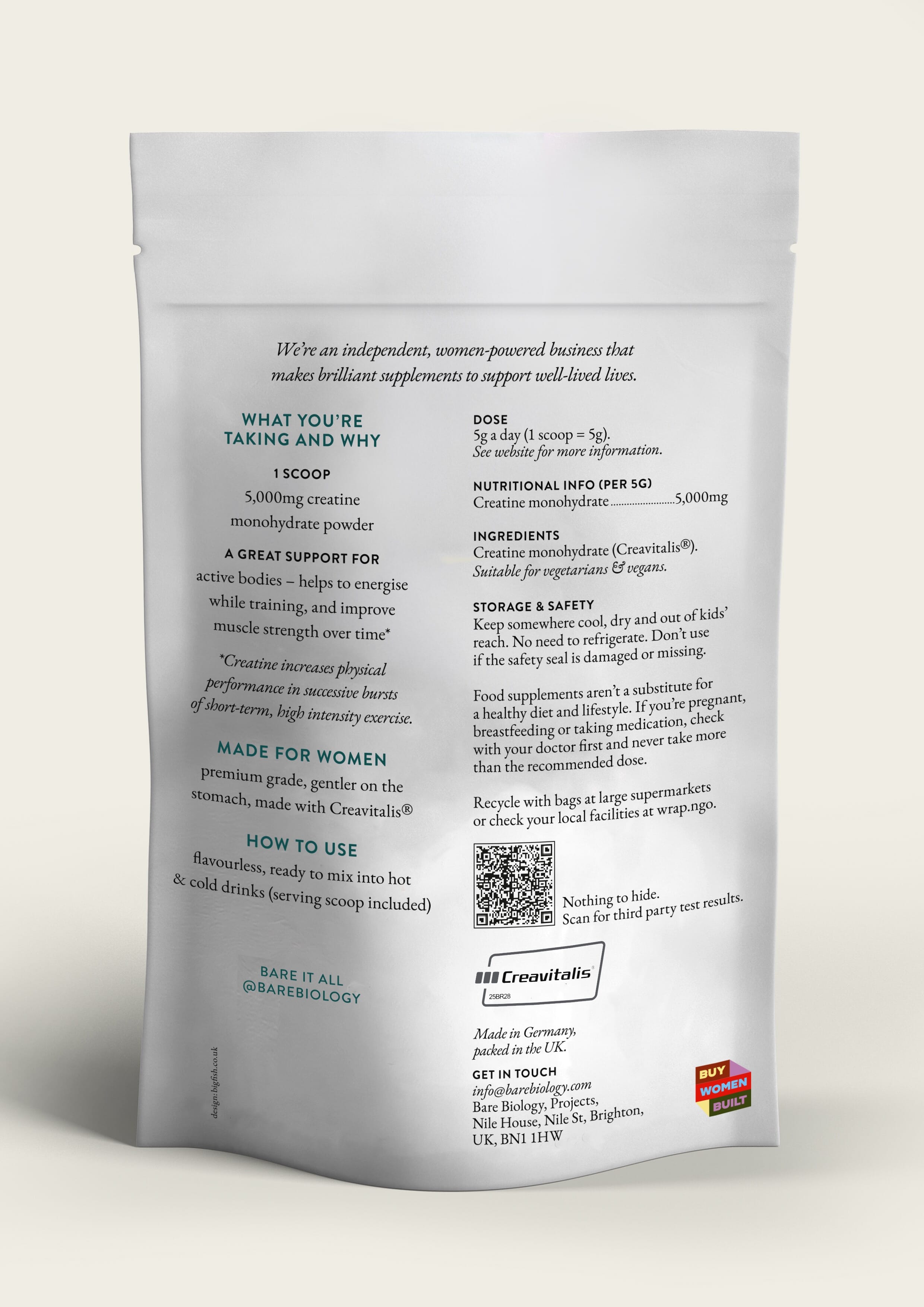 We recommend starting with a smaller dose. Try 2.5g for the first week or two and see how you feel (some women in the Bare Biology team found this worked well). Once you feel happy, and your body is reacting well to High Flyer, work up to 5g. Research from the International Society of Sports Nutrition suggests that 5g daily is effective and well tolerated by most people, with common dosages ranging between 3-5g.
