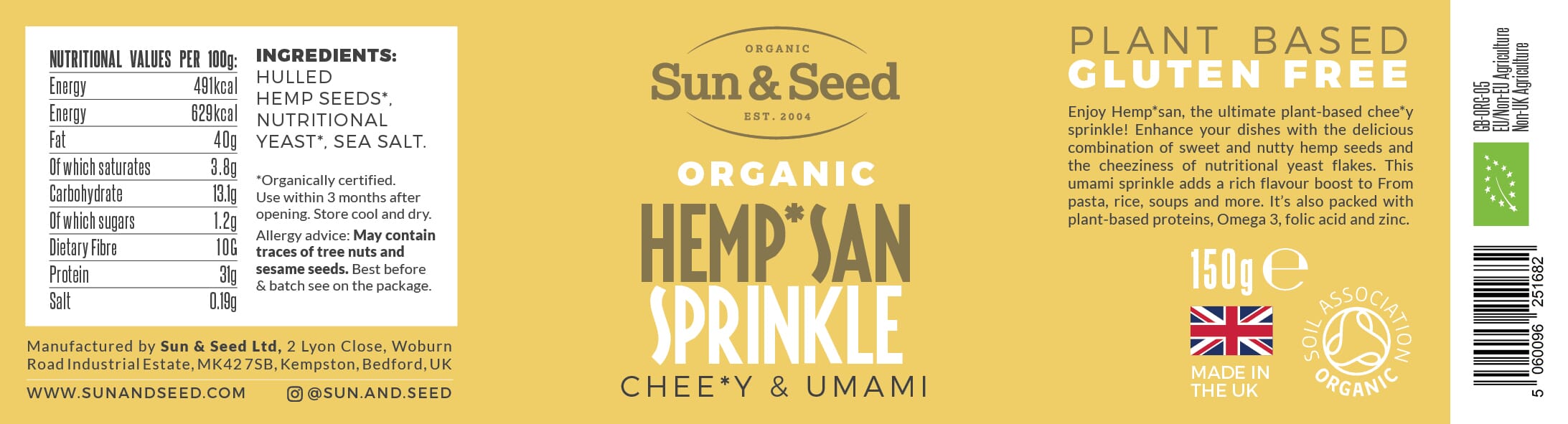 Shake before use. Sprinkle 1–2 teaspoons over pasta, salads, roasted veg, soups, or grains. Use as a finishing seasoning for creamy, nutty depth.
