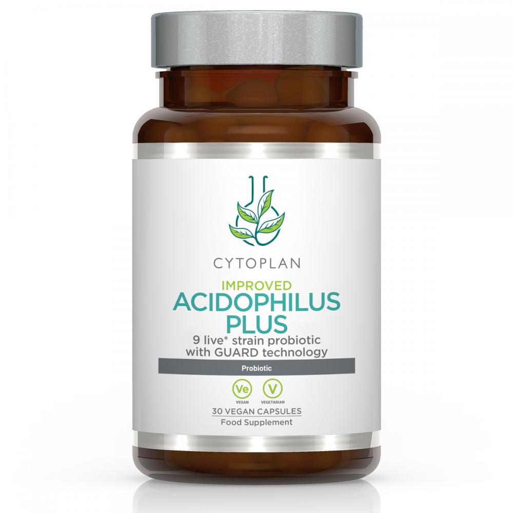 Improved formula. Acidophilus Plus now utilises GUARD technology; a patented, innovative and natural technology proven to protect the bacterial strains from stomach acid and enable their timed release within the intestines.