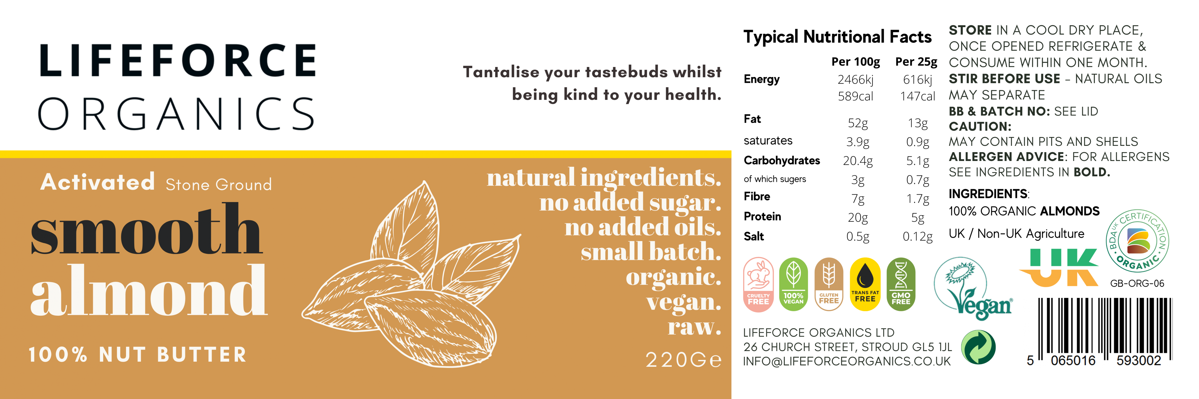 Activated Smooth Almond Nut Butter 220g x 6 CASE