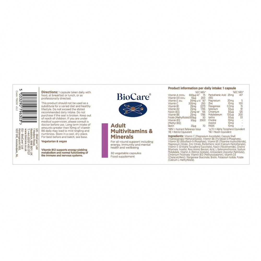 Simple, one a day formulation for adults, providing all-round nutritional support for health including energy, immunity, and nervous system support.