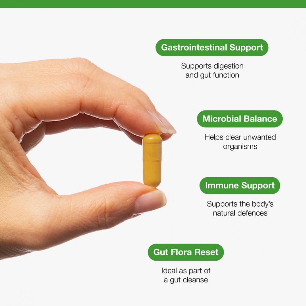 Broad-spectrum herbal complex combining standardised berberine, grapefruit seed, garlic & goldenseal to target unwanted microbes and restore microbial balance for optimal gut health and resilience. Comprehensive support for the gastrointestinal environment.