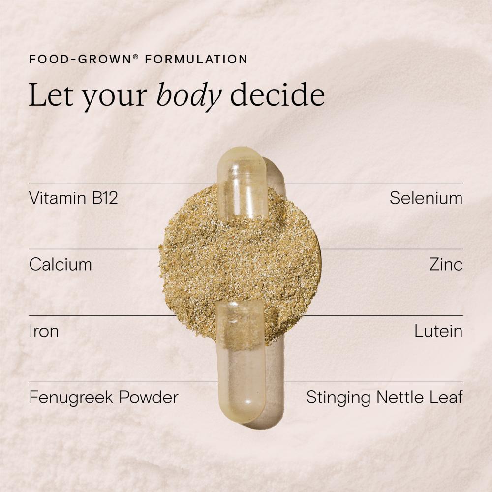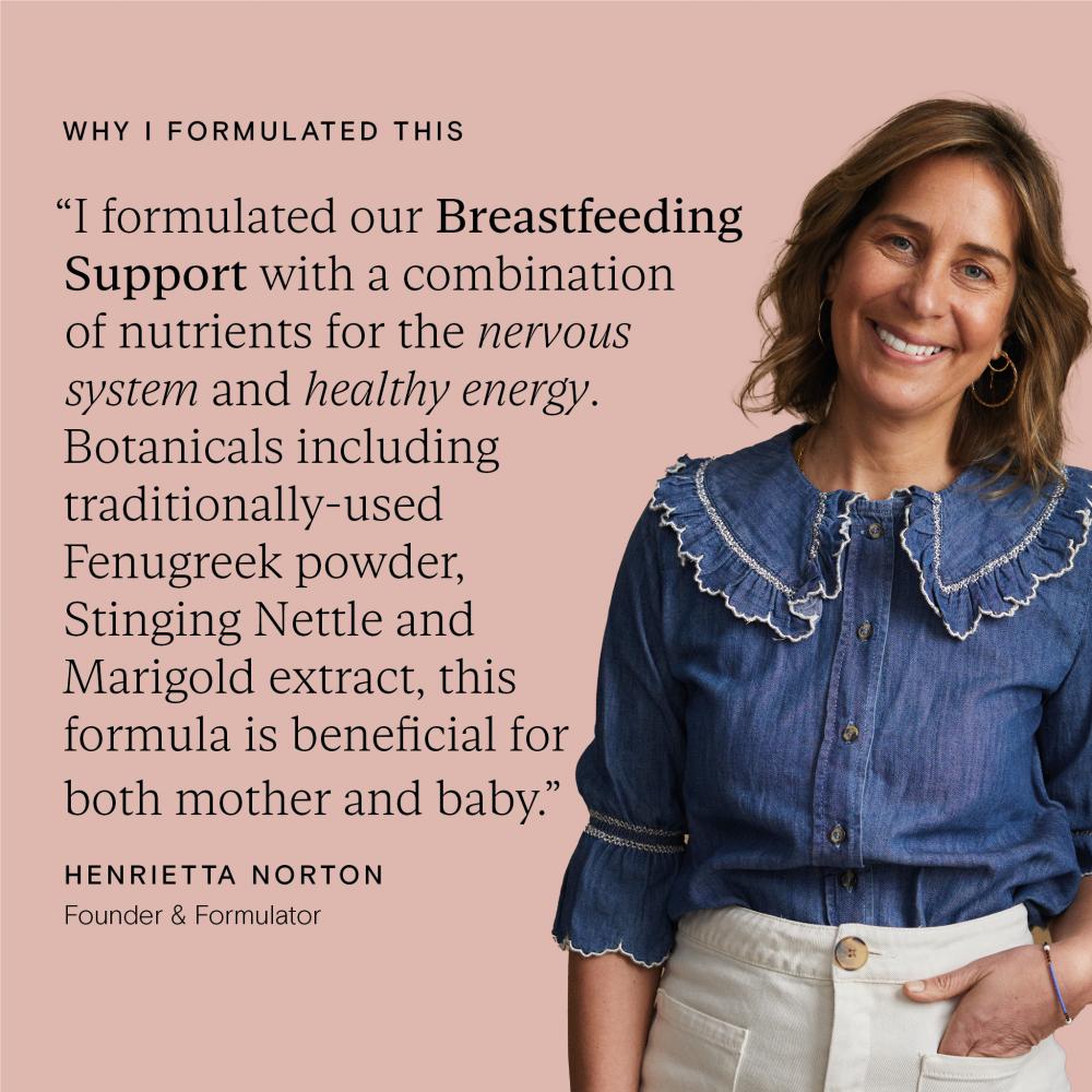 Formulated for mother and baby to support at a nutritionally demanding time. Energy-maintaining vitamin B6 sits alongside cognition-supporting iron and traditional breastfeeding botanicals fenugreek and stinging nettle.
