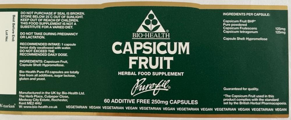 Bio-Health Capsicum Fruit 250mg powdered capsules.