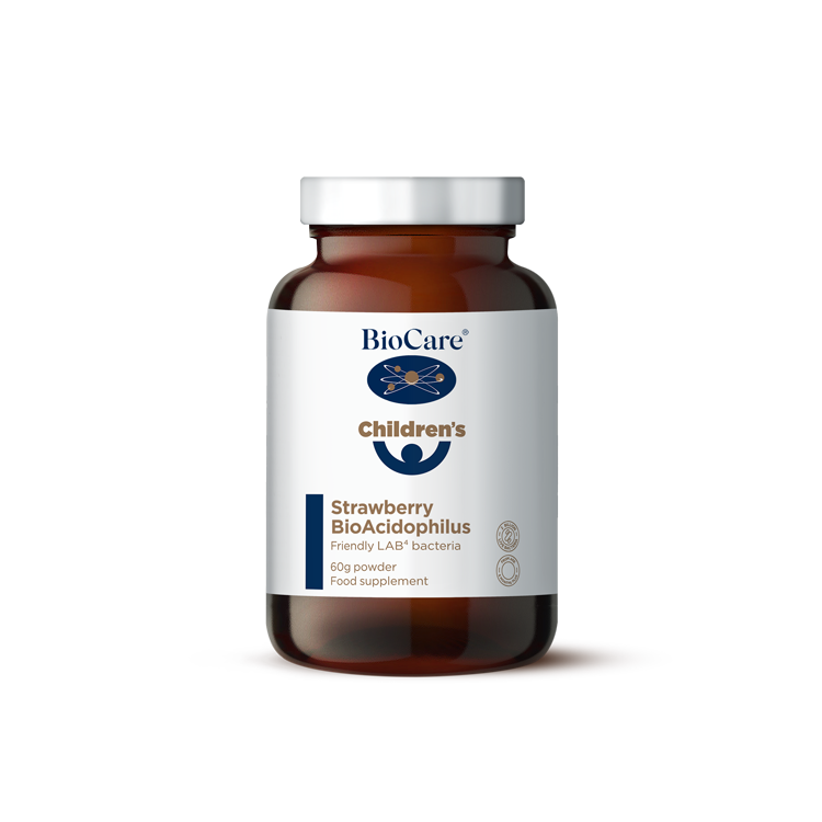 Children's Strawberry BioAcidophilus is an everyday children's friendly bacteria powder.