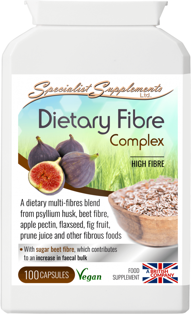 A high fibre food supplement, with 513mg of dietary fibre per capsule. Providing both soluble and insoluble fibre from psyllium husk, flaxseed, sugar beet, fenugreek seed, apple pectin, rhubarb, prune, broccoli, carrot and fig. Contributes to an increase in faecal bulk and normal bowel movements.