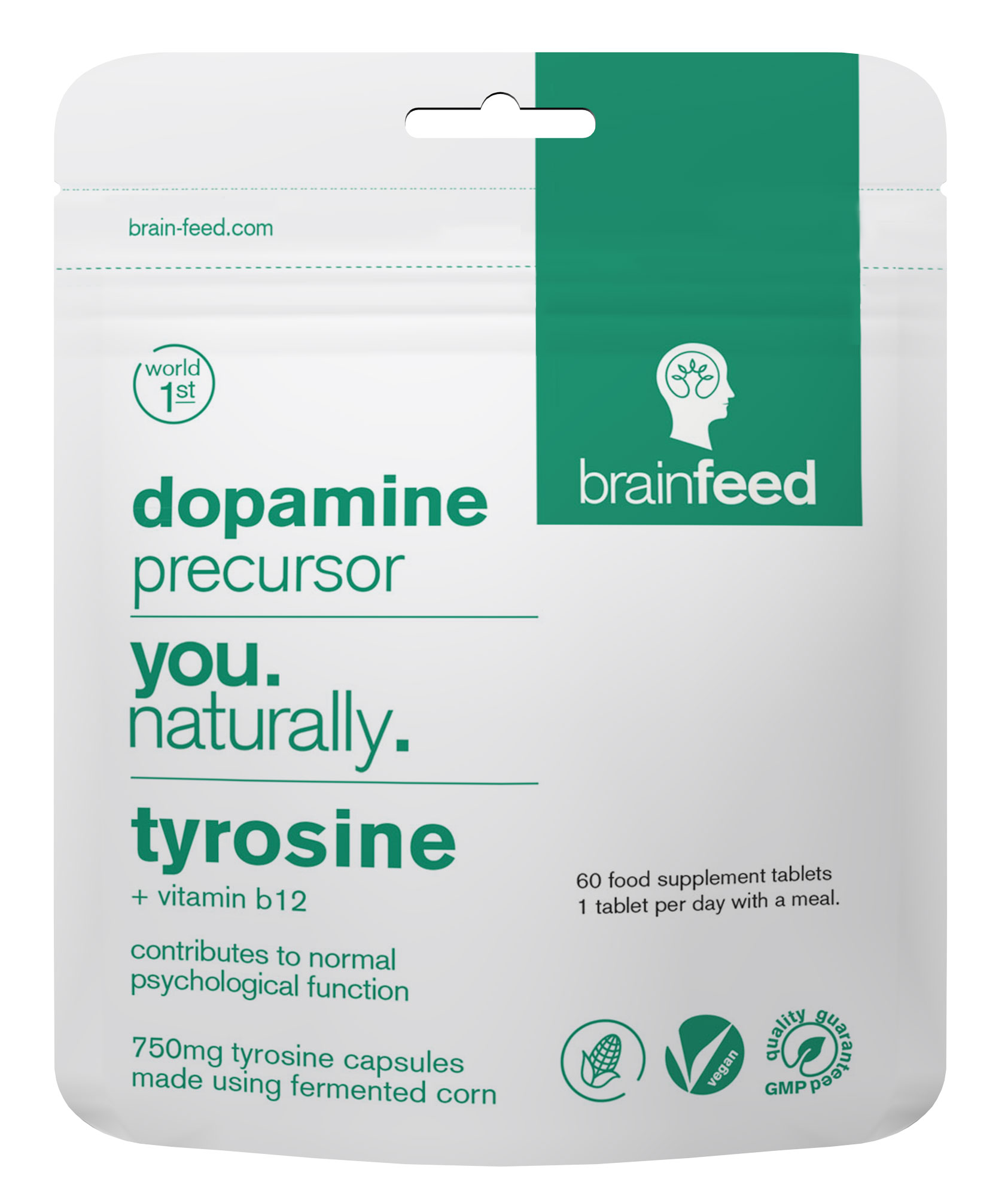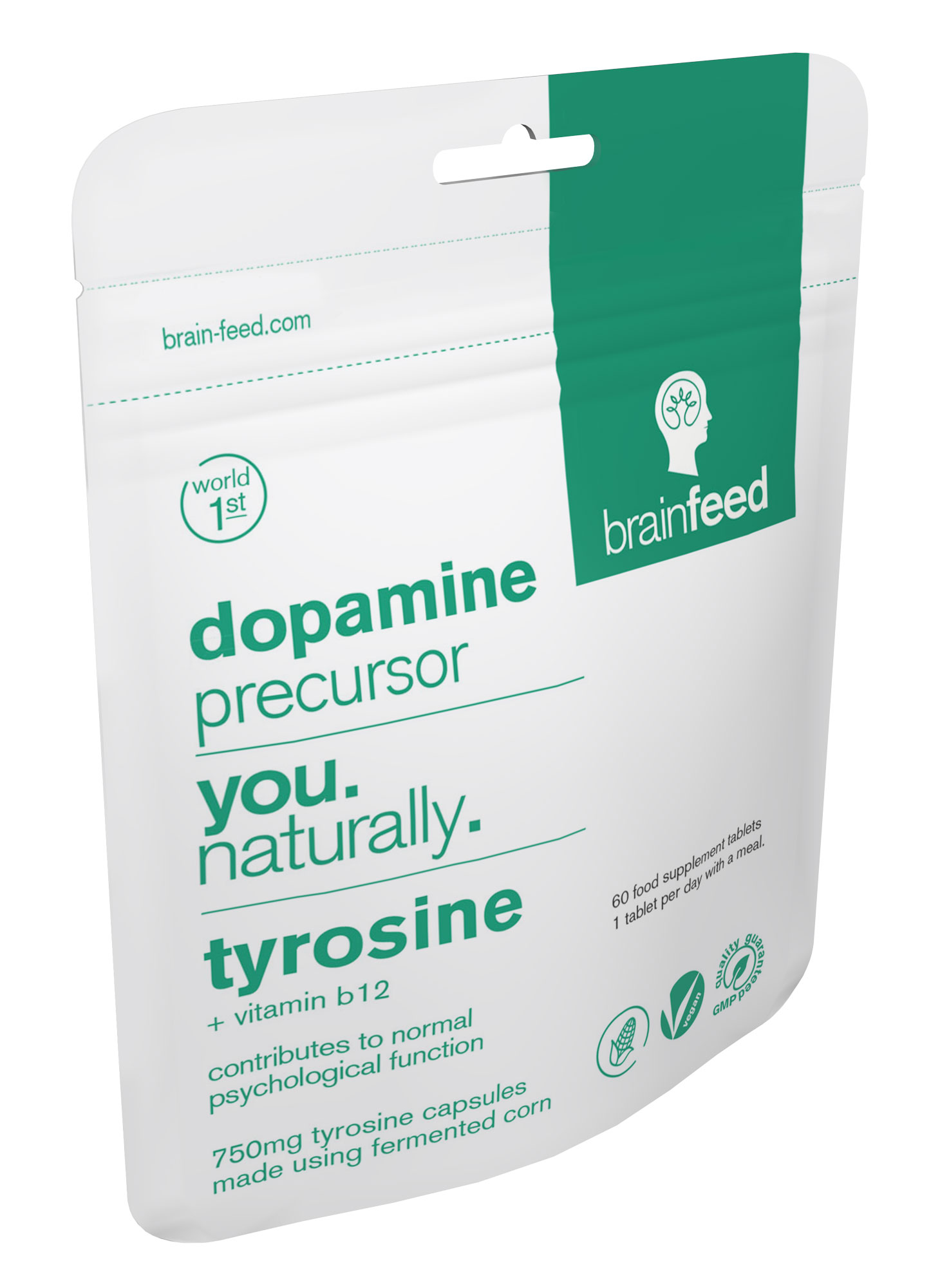 Tyrosine is a natural isolated nutrient and the building block to your reward and pleasure chemical messenger; dopamine. This tyrosine product is the world's 1st natural 750mg tyrosine from fermented corn.