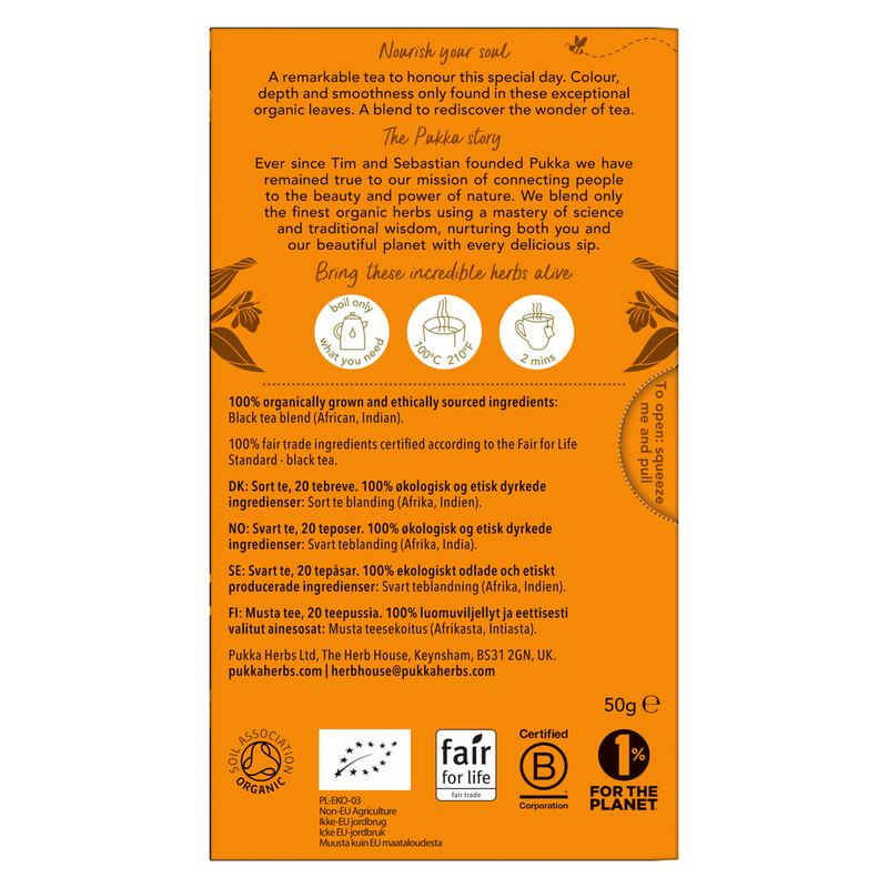 Pukka's English Breakfast tea is an exquisite blend of the very finest black teas.