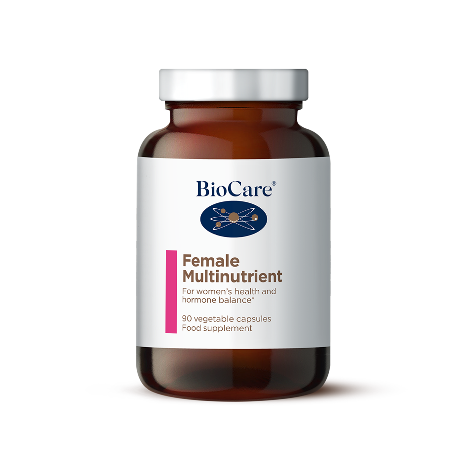 Female Multinutrient is an advanced multivitamin for women's health and hormone balance, containing vitamin B6 to support female hormones, with magnesium, zinc, green tea, and rosemary