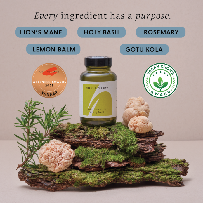 An uplifting, caffeine-free mix of lion's mane, holy basil, rosemary and rhodiola for clarity, memory and concentration. 100% fruiting body lion’s mane for full spectrum benefits; ensuring all therapeutic, bioactive compounds are included for optimum performance and efficacy.