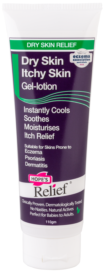 Hope’s Relief Gel-Lotion is a unique hybrid formulation with seven active natural ingredients including aloe vera, which instantly calms skin whilst penetrating deep to moisturise dry and itchy skin. Ideal for babies and children.