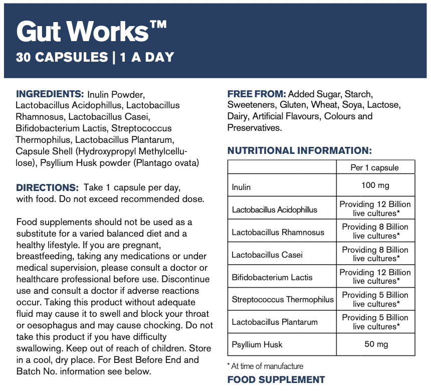 This advanced formula (50bn CFU) of clinically studied gut-friendly bacteria provides daily support for your gut, digestion and immune health. Combining six optimal biotic strains including acidophilus, plantarum, casei, rhamnosus, bifidobacterium, streptococcus, plus inulin.