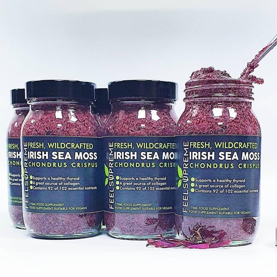 A fresh blend of Irish Sea Moss processed into an easy-to-consume gel form. Contains 92 of 102 essential minerals. The highly nutritious gel can be consumed raw, added to food or smoothies, or applied directly to the skin. This is a fresh product with a three week shelf life.